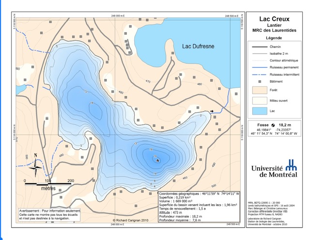 Le lac Creux est situé dans la Municipalité de Lantier, Québec, Canada, dans la magnifique région des Laurentides.